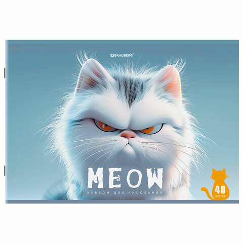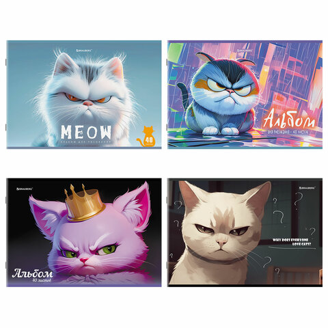 Альбом для рисования А4, 40 листов, скоба, обложка картон, BRAUBERG, 203х288 мм, "Суровые коты" (4 вида), 107115