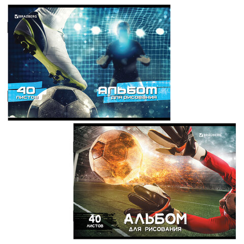 Альбом для рисования А4, 40 листов, скоба, обложка картон, BRAUBERG, 205х290 мм, "Футбол" (2 вида), 106702