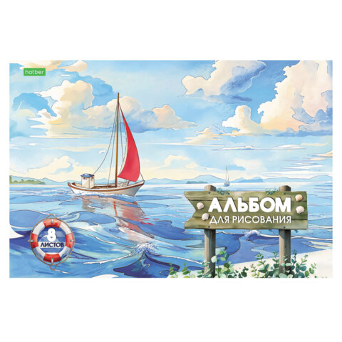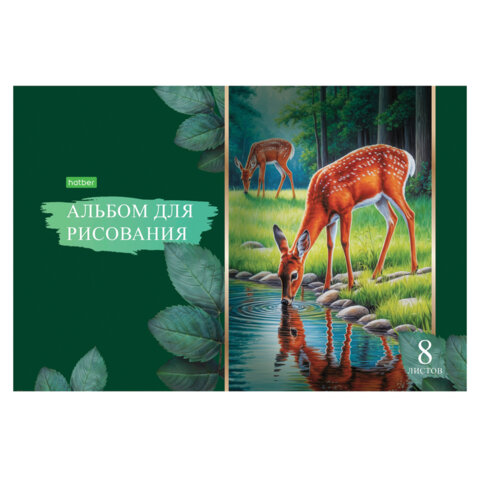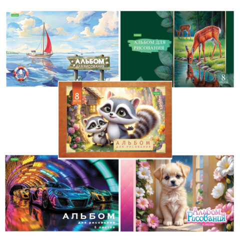 Альбом для рисования А4 8 л., скоба, обложка офсет, HATBER ECO, 205х290 мм, Ассорти (5 видов), 081950, 8А4C