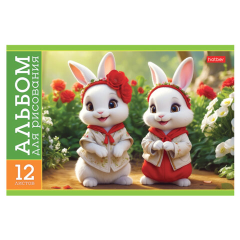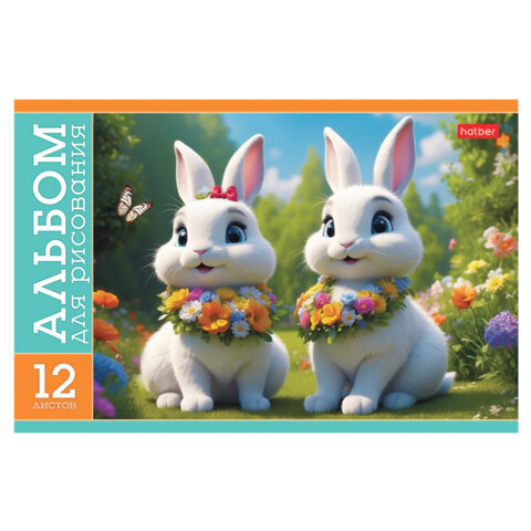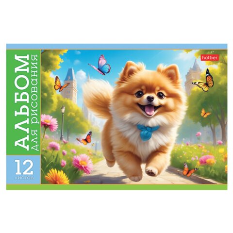 Альбом для рисования МАЛЫЙ ФОРМАТ А5 12 л., скоба, обложка картон, HATBER, 205х140 мм, "Пушистые милашки" (5 видов), 091518, 12А5В
