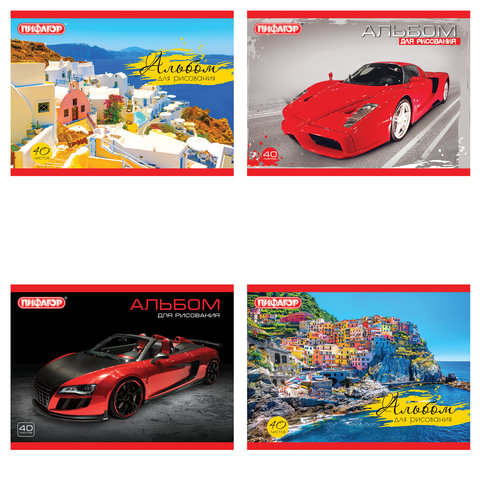Альбом для рисования МАЛЫЙ ФОРМАТ А5, 40 л., скоба, обложка офсет, ПИФАГОР, 200х148 мм, "Авто/Путешествие" (4 вида), 103724