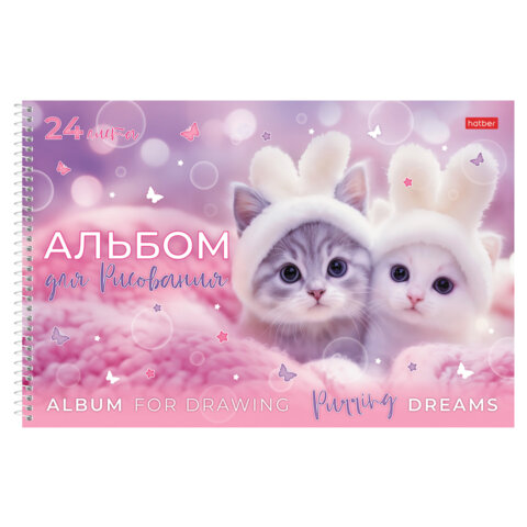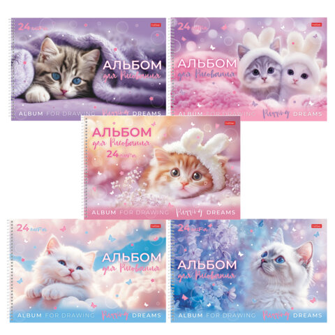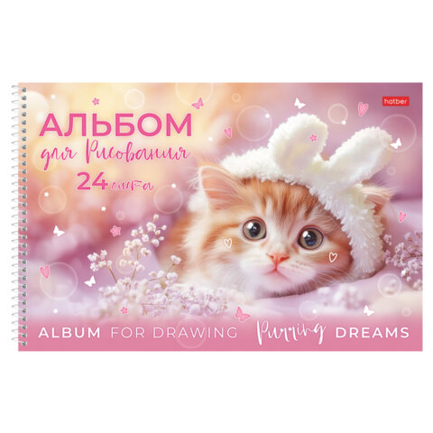 Альбом для рисования, обложка пластик, А4 24 л., спираль, HATBER, 198х300 мм, "Нежные мечты" (5 видов), 091533, 24А4Вгр
