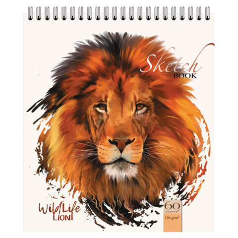 Скетчбук, белая бумага 120 г/м2, 170х195 мм, 60 л., гребень, фольга, выборочный твин лак, "Лев", 99488