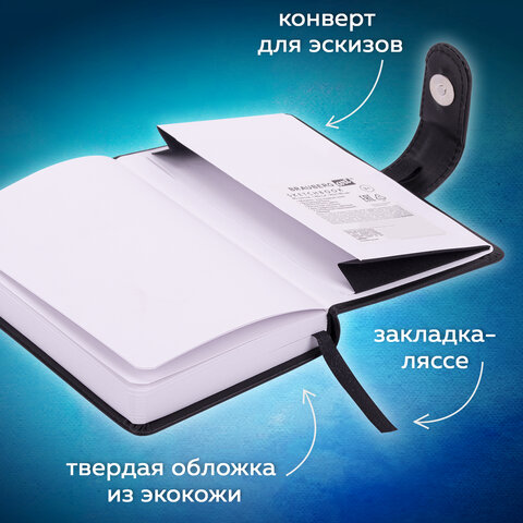 Скетчбук BRAUBERG ART "CLASSIC" для эскизов и графики. Внутренний блок - специальная художественная бумага белого цвета с гладкой фактурой. Предназначен для работы с широким спектром графических материалов (уголь, соусы, карандаши и прочие).