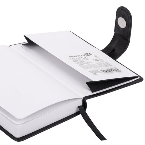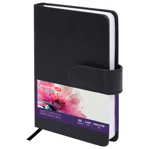 Скетчбук, белая бумага 140 г/м2 90х140 мм, 80 л., КОЖЗАМ, застежка, BRAUBERG ART CLASSIC, черный, 116459
