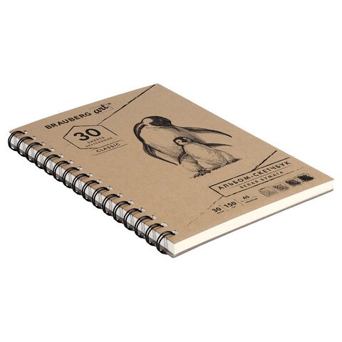 Скетчбук, белая бумага 150 г/м2, 148х210 мм, 30 л., гребень, BRAUBERG ART CLASSIC, 128950