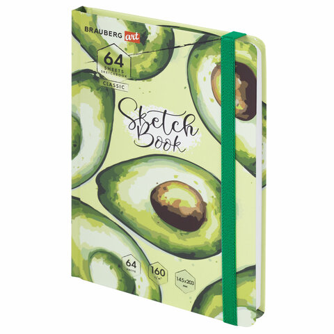 Скетчбук, белая бумага 160 г/м2, 145х203 мм, 64 л., резинка, твердый, BRAUBERG ART CLASSIC "Авокадо", 114588