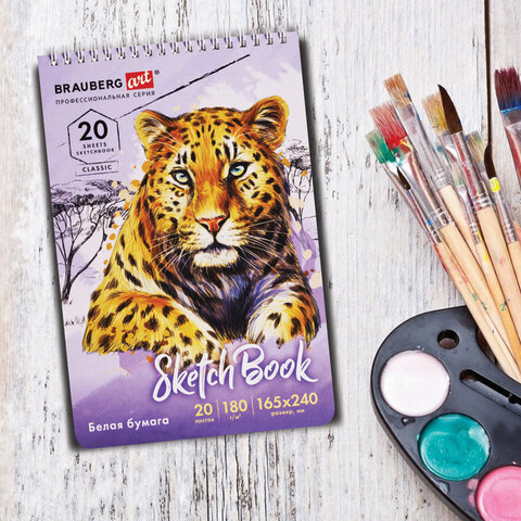 Скетчбук, белая бумага 180 г/м2, 165х240 мм, 20 л., гребень, твердая обложка, BRAUBERG ART CLASSIC, 112993
