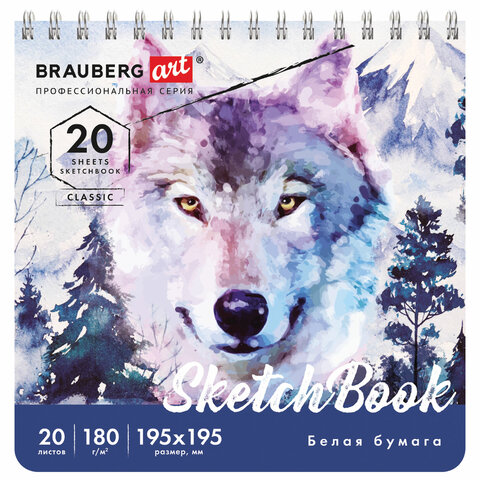Скетчбук, белая бумага 180 г/м2, 195х195 мм, 20 л., гребень, твердая обложка, BRAUBERG ART CLASSIC, 112994