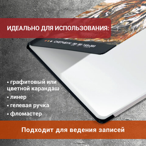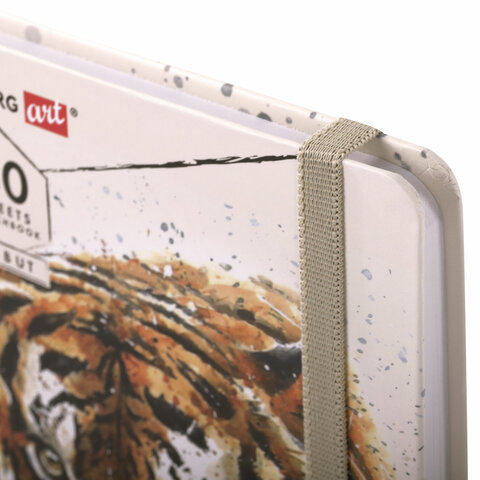 Скетчбук, белая бумага 80 г/м2, 145х203 мм, 80 л., резинка, твердый, BRAUBERG ART DEBUT "Тигр", 114580