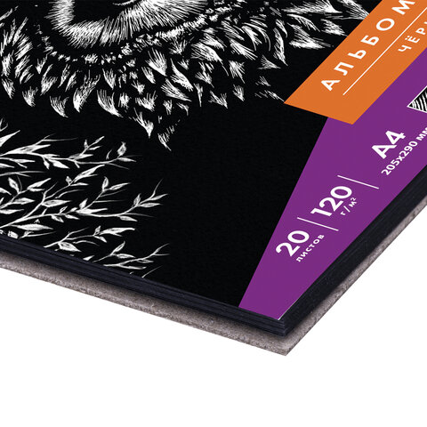 Скетчбук, черная бумага 120 г/м2, 205х290 мм, 20 л., гребень, жёсткая подложка, BRAUBERG ART DEBUT, 110995