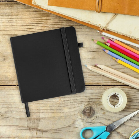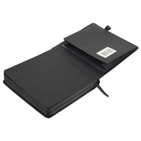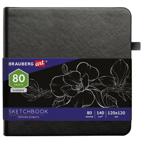 Скетчбук, черная бумага 140 г/м2, 120х120 мм, 80 л., КОЖЗАМ, резинка, карман, BRAUBERG ART CLASSIC, черный, 113202