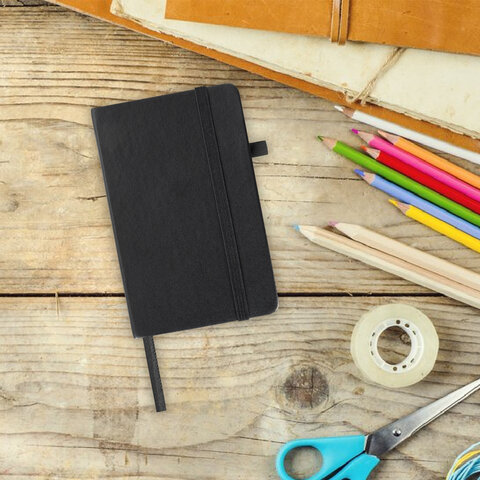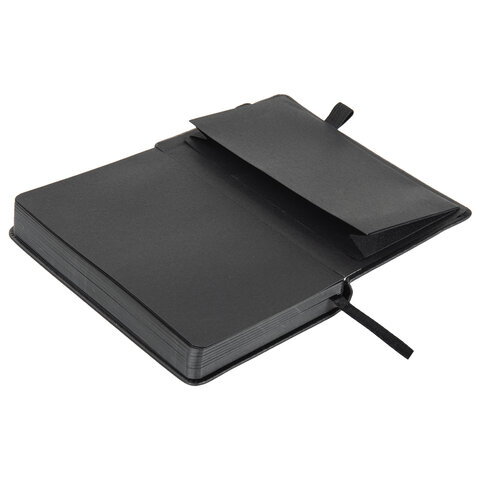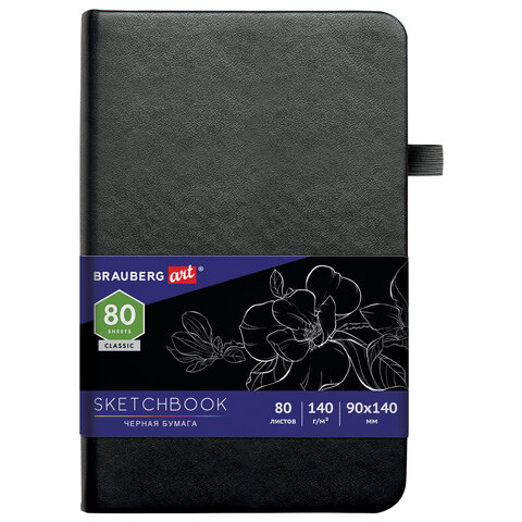 Скетчбук, черная бумага 140 г/м2, 90х140 мм, 80 л., КОЖЗАМ, резинка, карман, BRAUBERG ART CLASSIC, черный, 113201