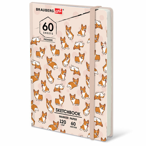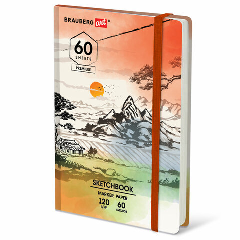 Скетчбук для маркеров 120 г/м2, 148х210 мм, 60 л., твердая обложка, резинка, BRAUBERG ART PREMIERE, МИКС, 115103