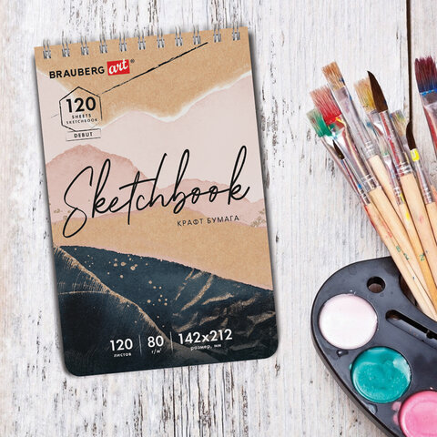 Скетчбук, крафт-бумага 80 г/м2, 142х212 мм, 120 л., гребень, твердая обложка, BRAUBERG ART DEBUT, 112998