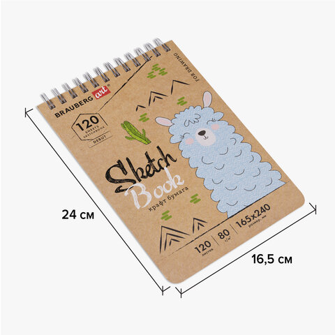 Скетчбук, крафт-бумага 80 г/м2, 165х240 мм, 120 л., гребень, твердая обложка, BRAUBERG ART DEBUT, 112999