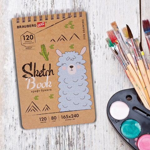 Скетчбук BRAUBERG ART "DEBUT" для эскизов и графики. Внутренний блок - специальная художественная гладкая крафт-бумага коричневого оттенка. Подходит для работы с широким спектром графических материалов (уголь, соусы, карандаши и прочие).