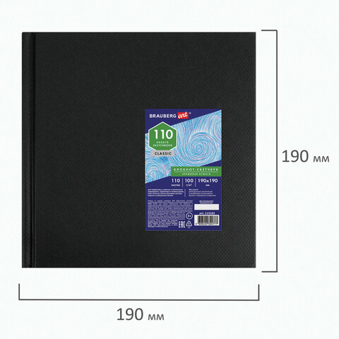 Скетчбук, слоновая кость 100 г/м2, 190х190 мм, 110 л., книжный твердый переплет, BRAUBERG ART CLASSIC, 113185