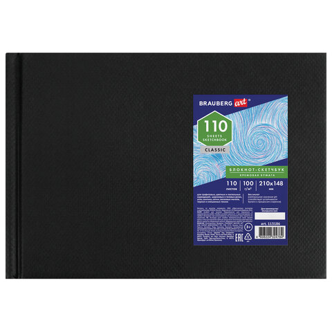 Скетчбук, слоновая кость 100 г/м2, 210х148 мм, 110 л., книжный твердый переплет, BRAUBERG ART CLASSIC, 113186