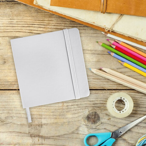 Скетчбук, слоновая кость 140 г/м2 120х120 мм, 80 л., КОЖЗАМ, резинка, BRAUBERG ART CLASSIC, белый, 113189