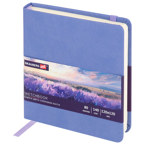 Скетчбук, слоновая кость 140 г/м2 120х120 мм, 80 л., КОЖЗАМ, резинка, BRAUBERG ART CLASSIC, пастель сиреневый, 116877