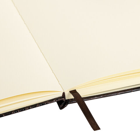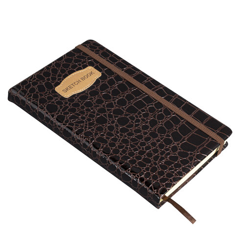 Скетчбук, слоновая кость 140 г/м2, 130х210 мм, 80 л., КОЖЗАМ, резинка, BRAUBERG ART CLASSIC, CROCO, коричневый, 116471