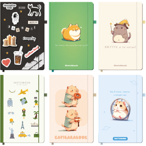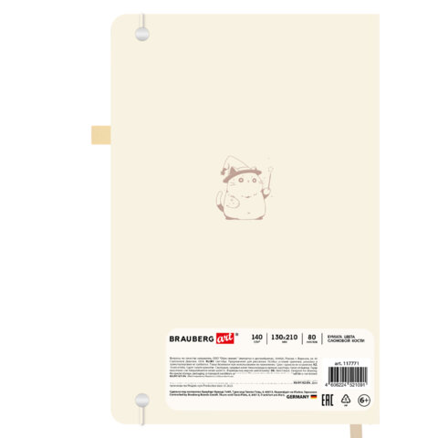 Скетчбук, слоновая кость 140 г/м2, 130х210 мм, 80 л., софт-тач, резинка, BRAUBERG ART CLASSIC, АССОРТИ, 117771