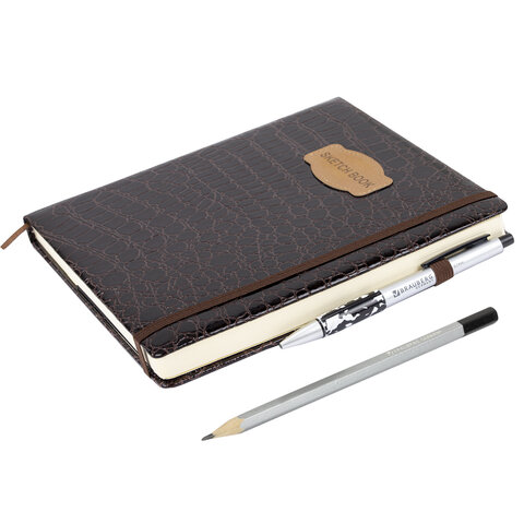 Скетчбук BRAUBERG ART "CLASSIC" подходит для эскизов, графики, набросков, каллиграфии, леттеринга, скетчинга и ведения записей. Это утонченный, компактный скетчбук с жесткой обложкой, стилизованной под кожу крокодила.
