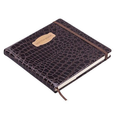 Скетчбук, слоновая кость 140 г/м2, 200х200 мм, 80 л., КОЖЗАМ, резинка, BRAUBERG ART CLASSIC, CROCO, коричневый, 116473