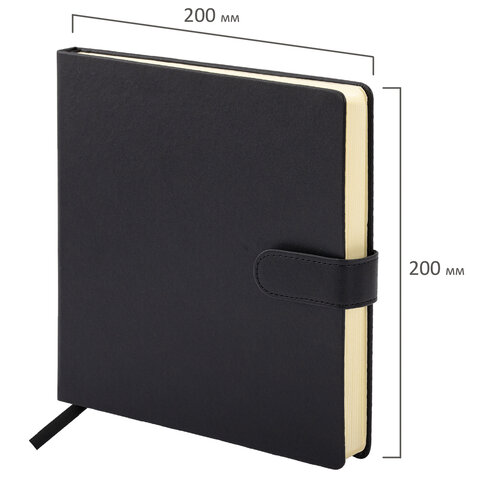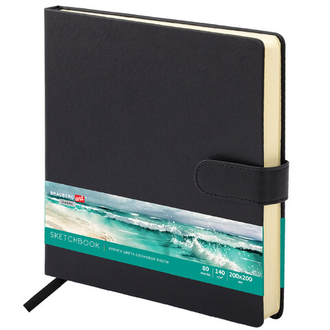 Скетчбук, слоновая кость 140 г/м2, 200х200 мм, 80 л., КОЖЗАМ, застежка, BRAUBERG ART CLASSIC, черный, 116462