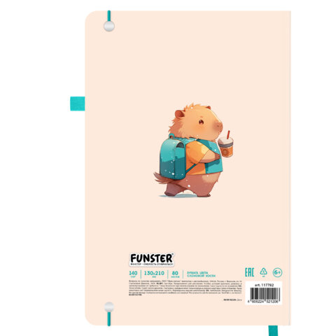 Скетчбук, слоновая кость 140 г/м2, 130х210 мм, 80 л., софт-тач, резинка, наклейки, FUNSTER (ФАНСТЕР), "Капибары", 117782