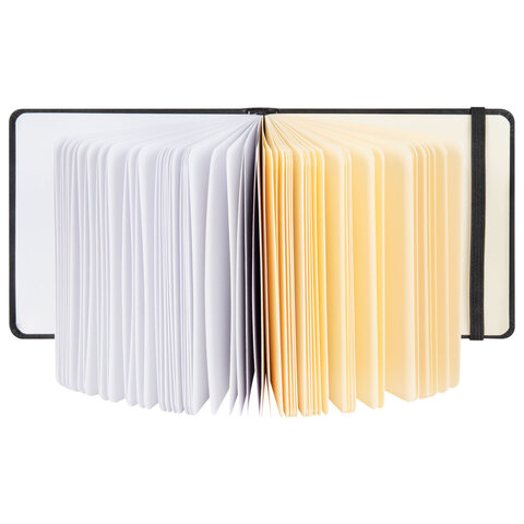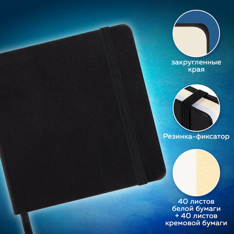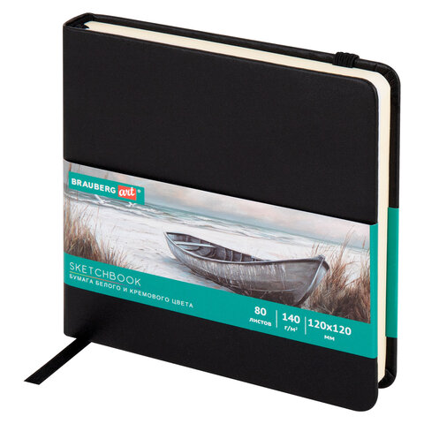 Скетчбук, слоновая кость+белая 140 г/м2, 120х120 мм, 80 л., КОЖЗАМ, резинка, BRAUBERG ART CLASSIC, черный, 116872