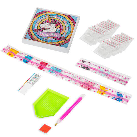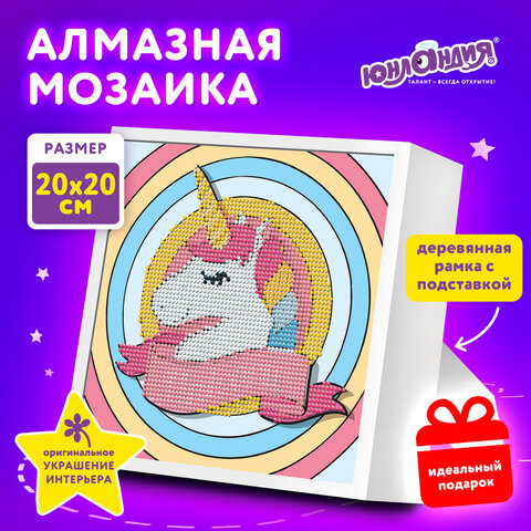 Картина стразами (алмазная мозаика) 20х20 см, ЮНЛАНДИЯ "Единорог", в деревянной рамке, 662436