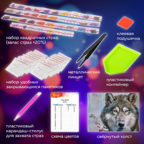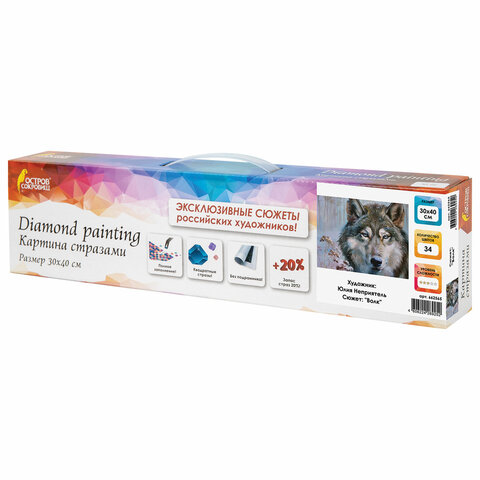 Картина стразами (алмазная мозаика) 30х40 см, ОСТРОВ СОКРОВИЩ "Волк", без подрамника, 662565