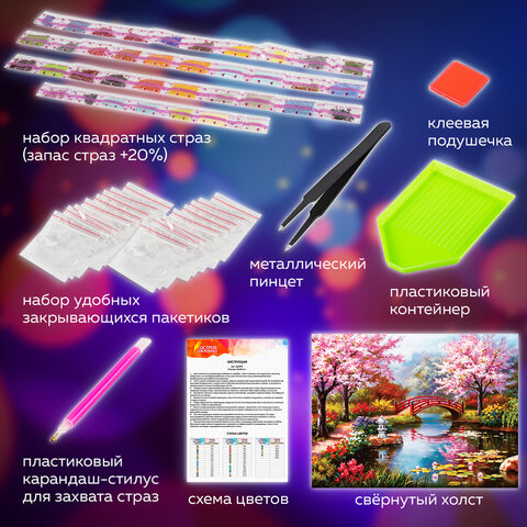 Картина стразами (алмазная мозаика) 30х40 см, ОСТРОВ СОКРОВИЩ "Японский сад", на подрамнике, 662424