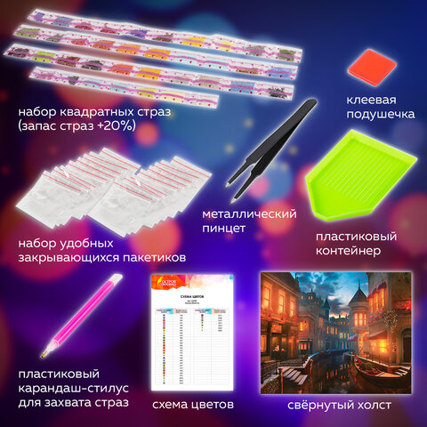 Картина стразами (алмазная мозаика) 40х50 см, ОСТРОВ СОКРОВИЩ "Ночная Венеция", без подрамника, 662419