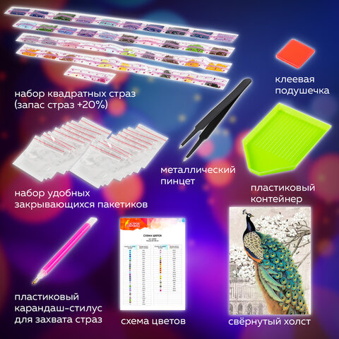 Картина стразами (алмазная мозаика) 40х50 см, ОСТРОВ СОКРОВИЩ "Павлин", без подрамника, 662411