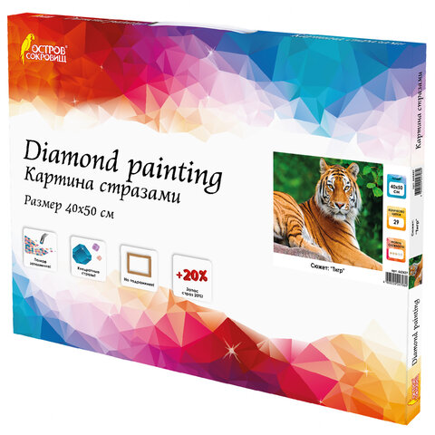 Картина стразами (алмазная мозаика) 40х50 см, ОСТРОВ СОКРОВИЩ "Тигр", на подрамнике, 662427