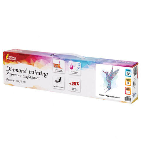 Картина стразами (алмазная мозаика) сияющая 30х30 см ОСТРОВ СОКРОВИЩ "Красочный полёт", без подрамника, 662444