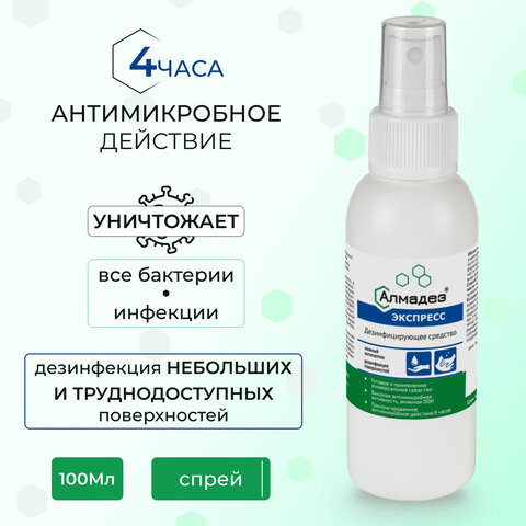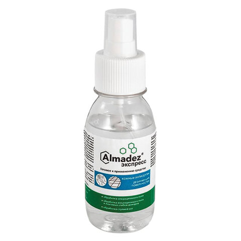 Антисептик для рук и поверхностей спиртосодержащий (63%) с распылителем 100 мл АЛМАДЕЗ-ЭКСПРЕСС, дезинфицирующий, жидкость, АЭ-501