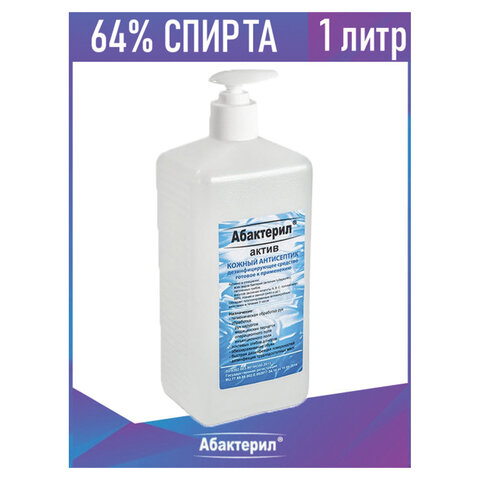 Антисептик для рук и поверхностей спиртосодержащий (64%) с дозатором 1л АБАКТЕРИЛ-АКТИВ, дезинфицирующий, жидкость, АА-202