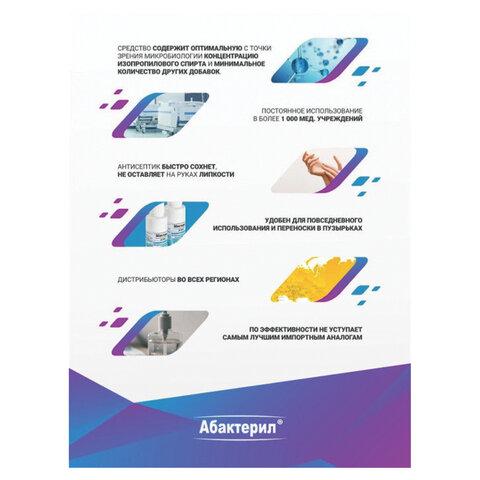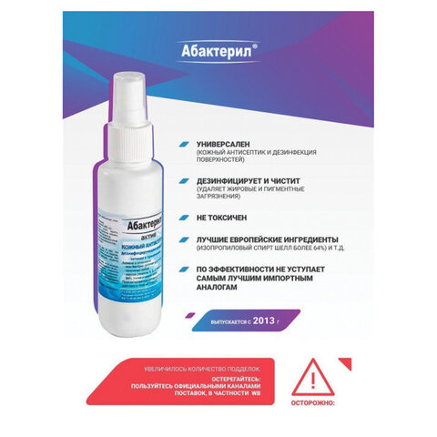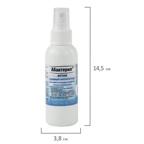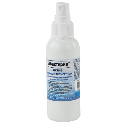 Антисептик для рук и поверхностей спиртосодержащий (64%) с распылителем 100 мл АБАКТЕРИЛ-АКТИВ, дезинфицирующий, жидкость, спрей, АА-216
