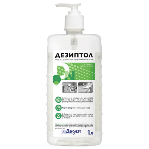 Антисептик для рук и поверхностей спиртосодержащий (68%) с дозатором 1 л ДЕЗИПТОЛ, дезинфицирующий, жидкость