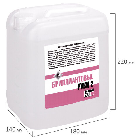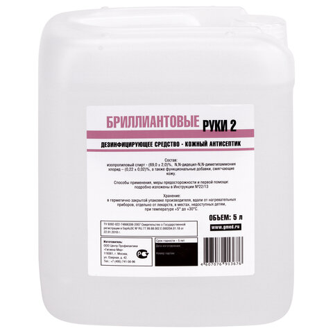 Антисептик для рук и поверхностей спиртосодержащий (69%) 5 л БРИЛЛИАНТОВЫЕ РУКИ-2, дезинфицирующий, жидкость