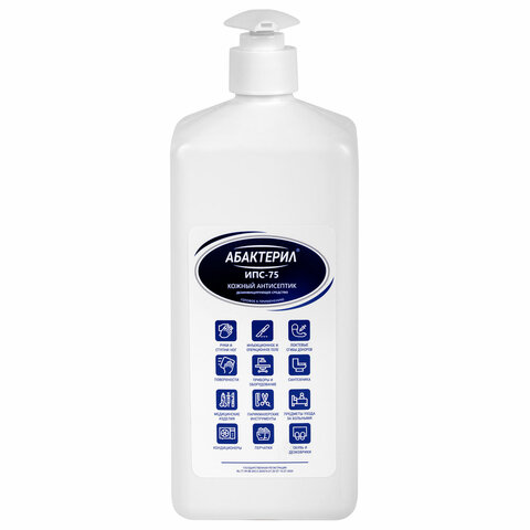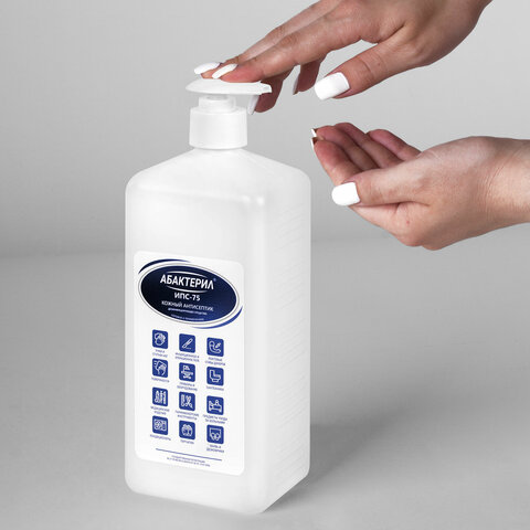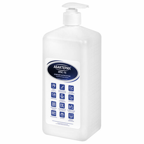 Антисептик для рук и поверхностей спиртовой (75%) с дозатором 1 л, АБАКТЕРИЛ-ИПС-75, дезинфицирующий, жидкость