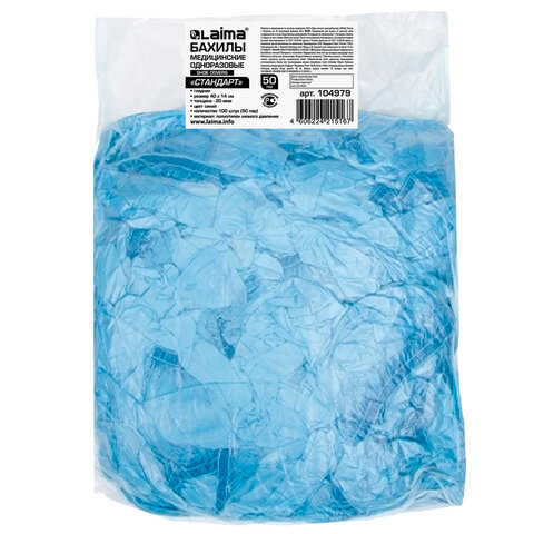 Бахилы КОМПЛЕКТ 100 шт. (50 пар) в упаковке, СТАНДАРТ, размер 40х14 см, 2,8 г, ПНД, LAIMA, 104979