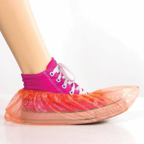 Бахилы КОМПЛЕКТ 100 штук (50 пар), ДЕТСКИЕ, размер 30х12 см, 2 г, ПНД, оранжевые, LAIMA, 104983