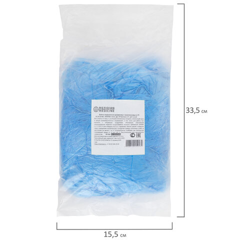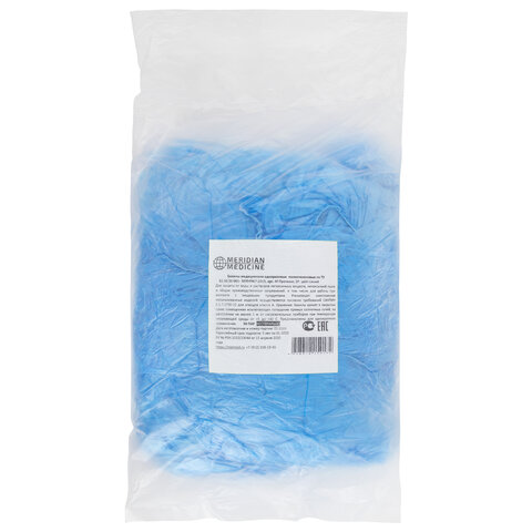 Бахилы MERIDIAN ПРОЧНЫЕ 3,8 г, синие, двойная резинка, КОМПЛЕКТ 100 штук (50 пар), 40х15 см, ПНД