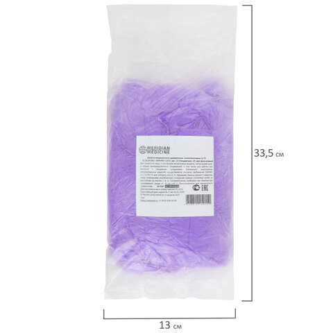 Бахилы MERIDIAN СТАНДАРТ 2,3 грамма, фиолетовые, КОМПЛЕКТ 100 штук (50 пар), 40х15 см