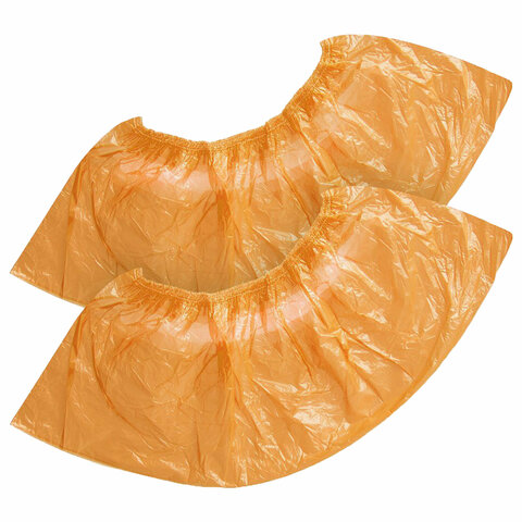 Бахилы оранжевые КОМПЛЕКТ 100 штук (50 пар) СТАНДАРТ+, размер 39х14 см, 16 мкм, 2 г, ELEGREEN